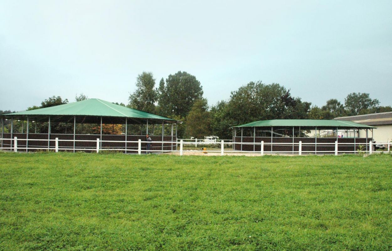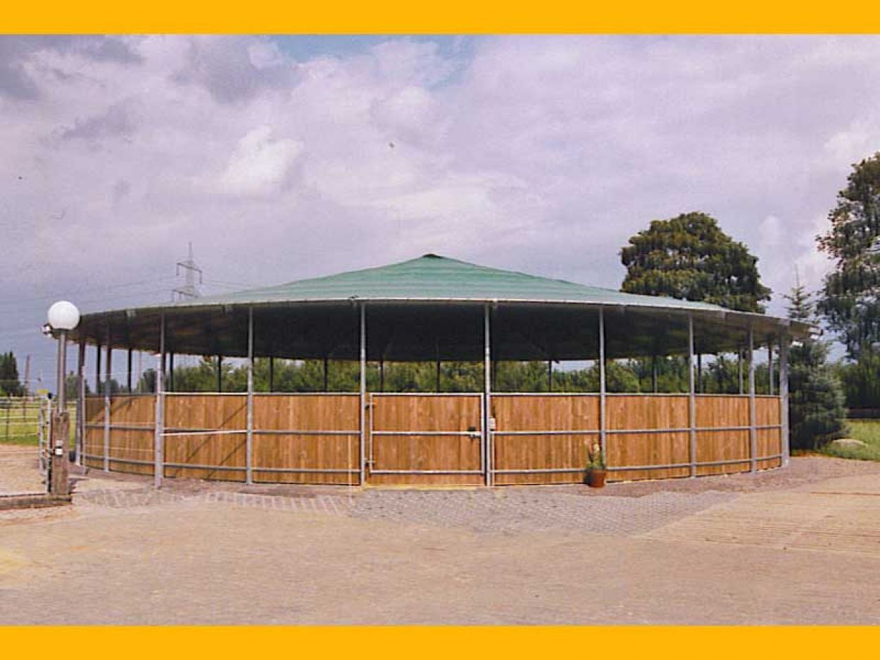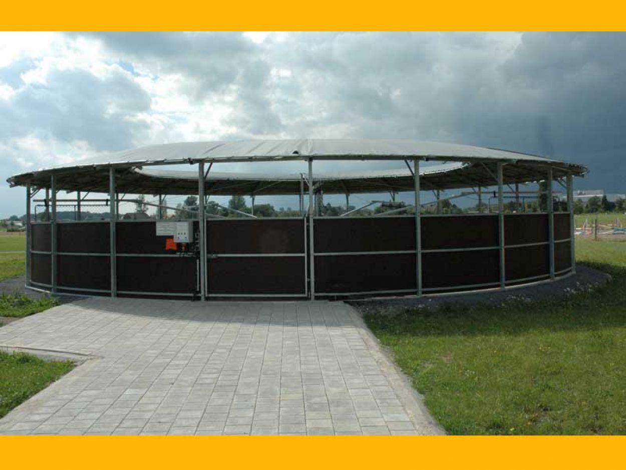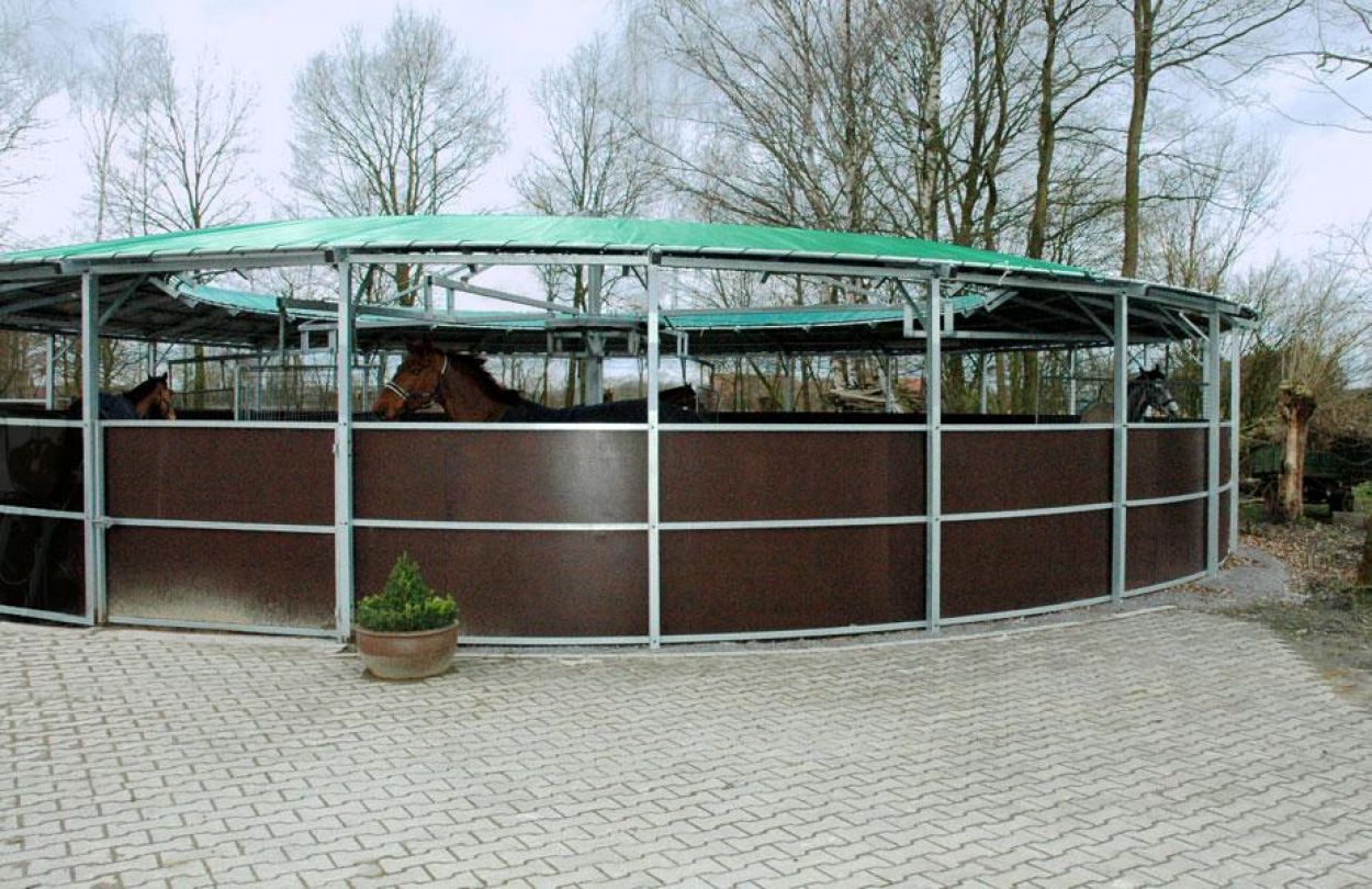 Wir fertigen selbstverständlich auch Führanlagen mit Laufflächenüberdachung, somit ist eine witterungsunabhängige, ganzjährige Nutzung gewährleistet.