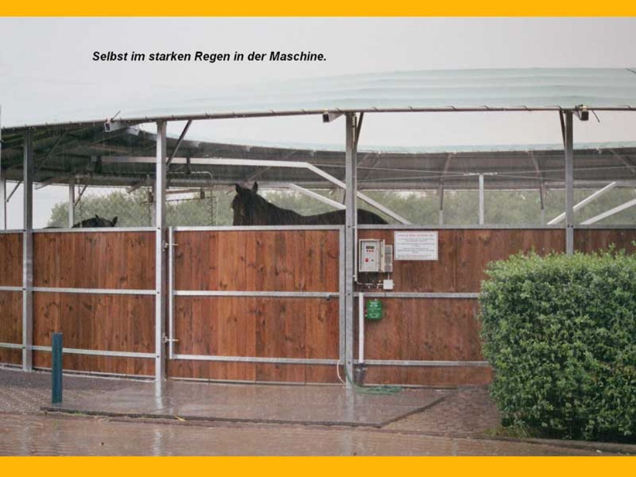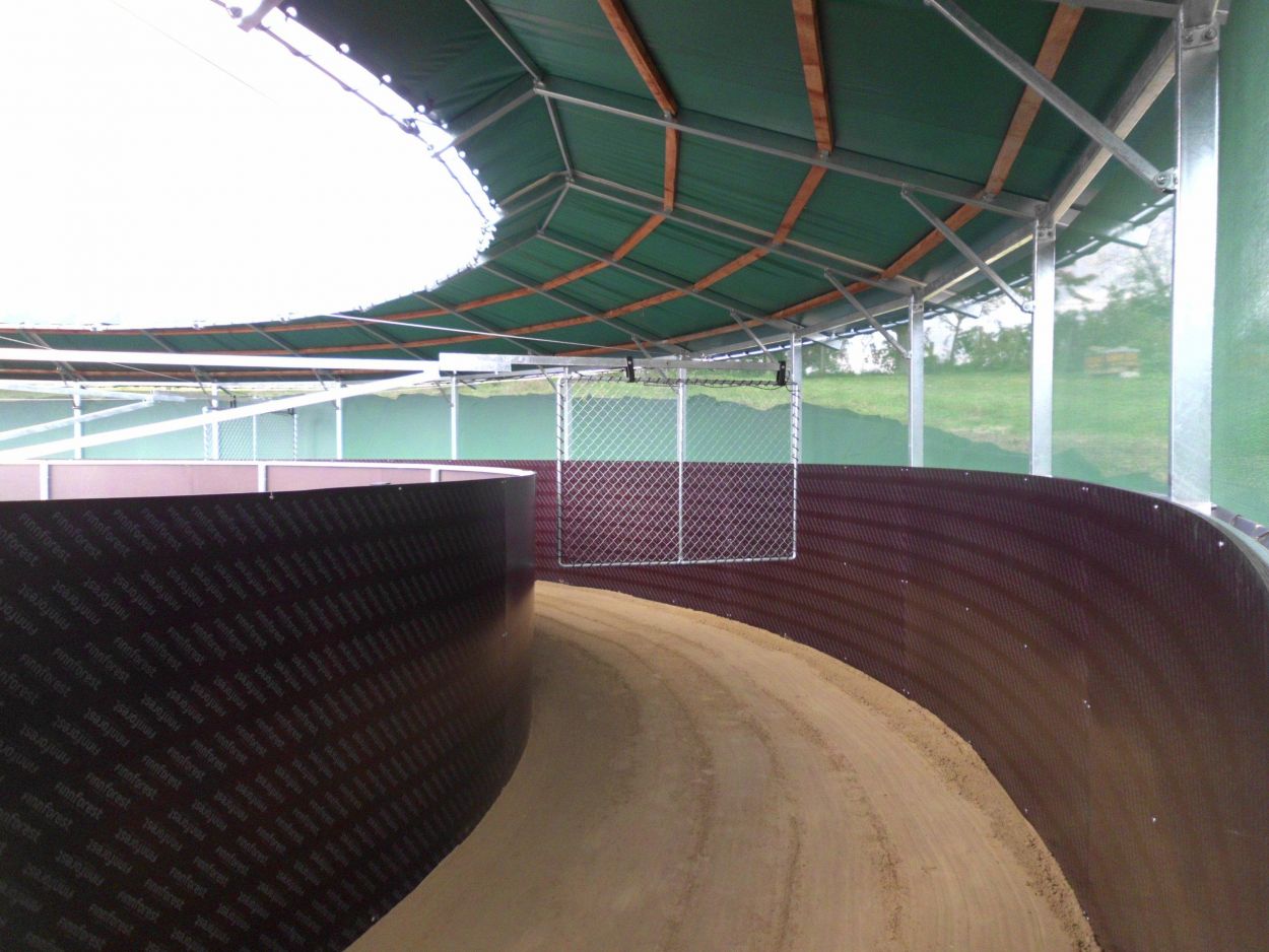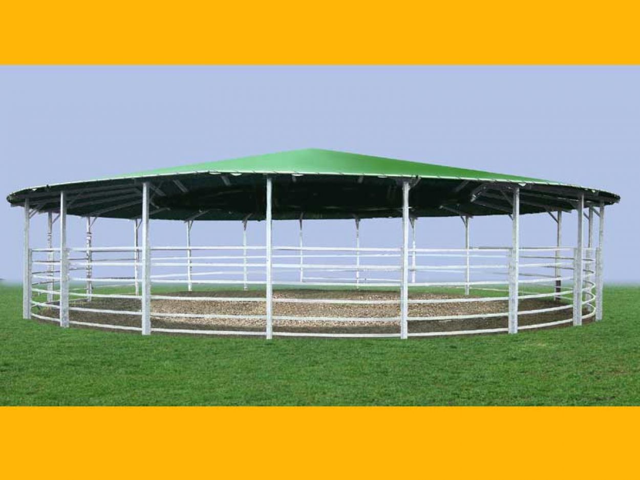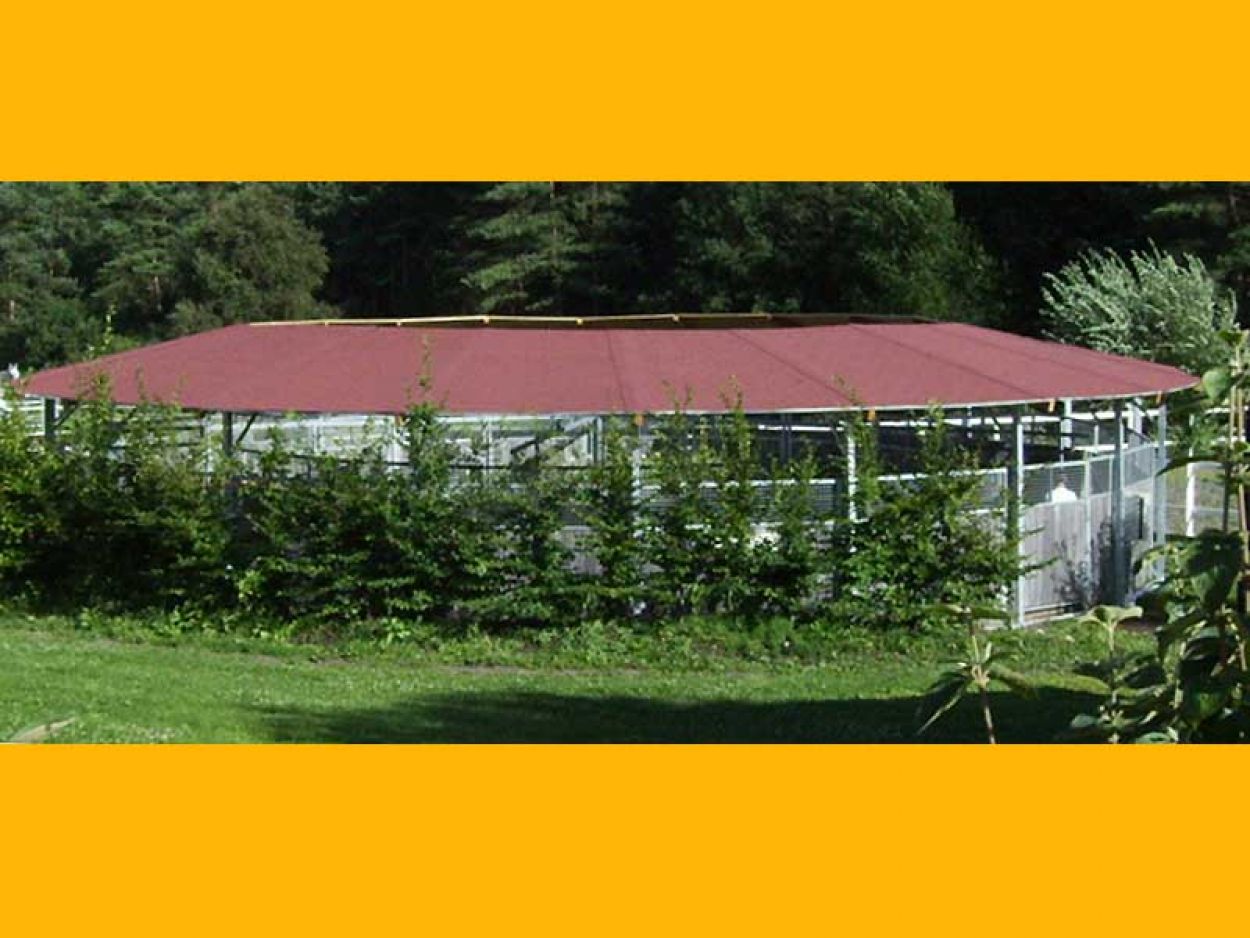 Wir fertigen selbstverständlich auch Führanlagen mit Laufflächenüberdachung, somit ist eine witterungsunabhängige, ganzjährige Nutzung gewährleistet.