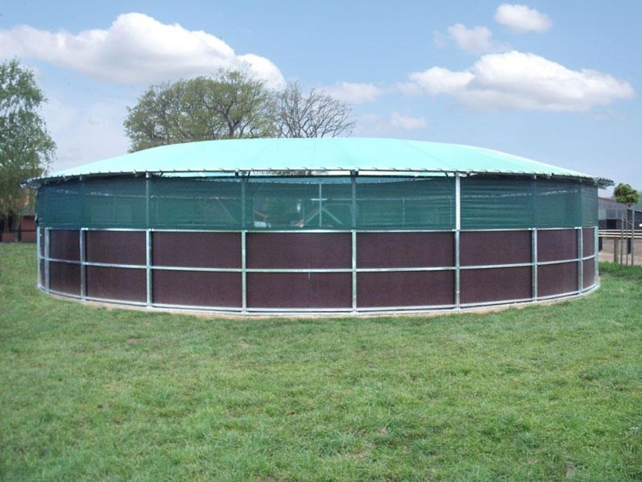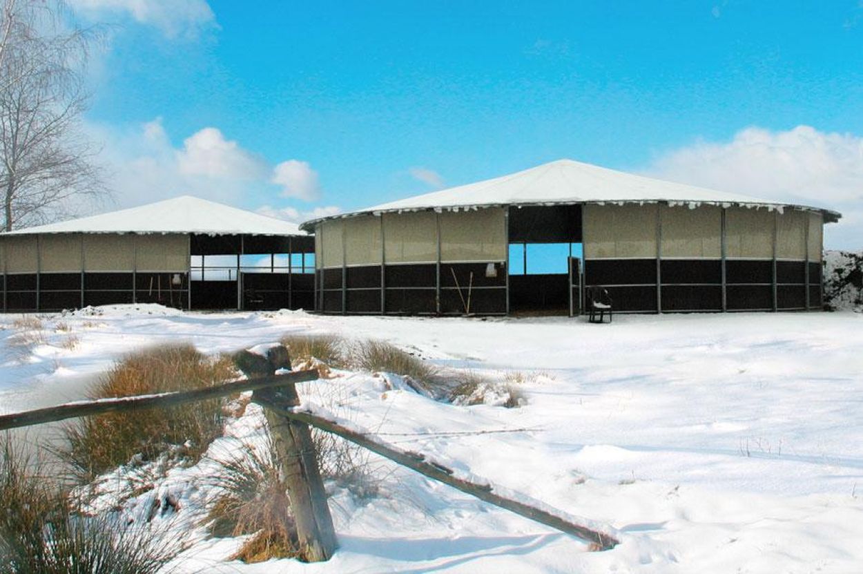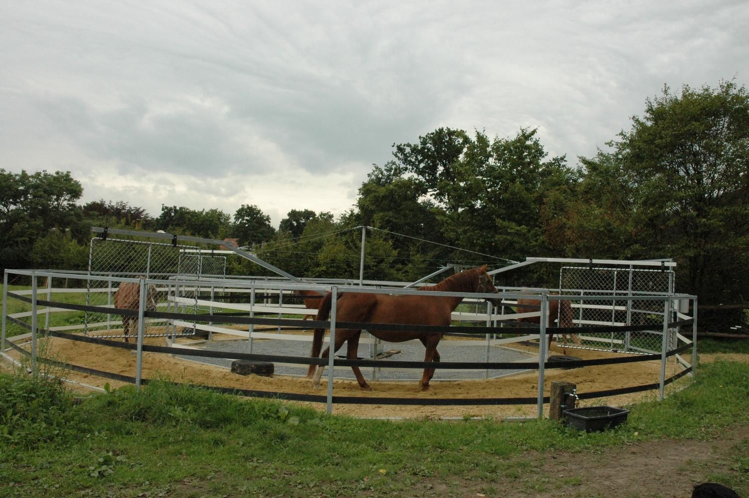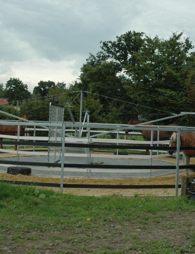 Wir fertigen selbstverständlich auch Führanlagen mit Laufflächenüberdachung, somit ist eine witterungsunabhängige, ganzjährige Nutzung gewährleistet.