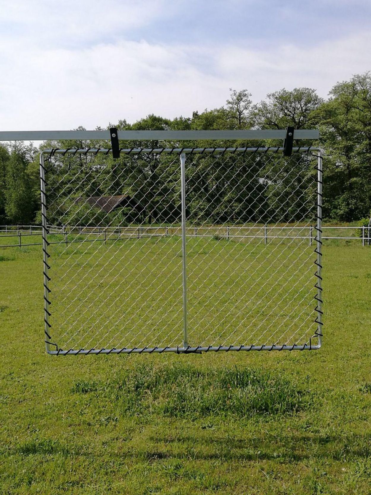 Die gesamte Konstruktion besteht aus feuerverzinktem Stahl und Aluminium. Für das Dach verwenden wir eine schwere, reißfeste Plane.
